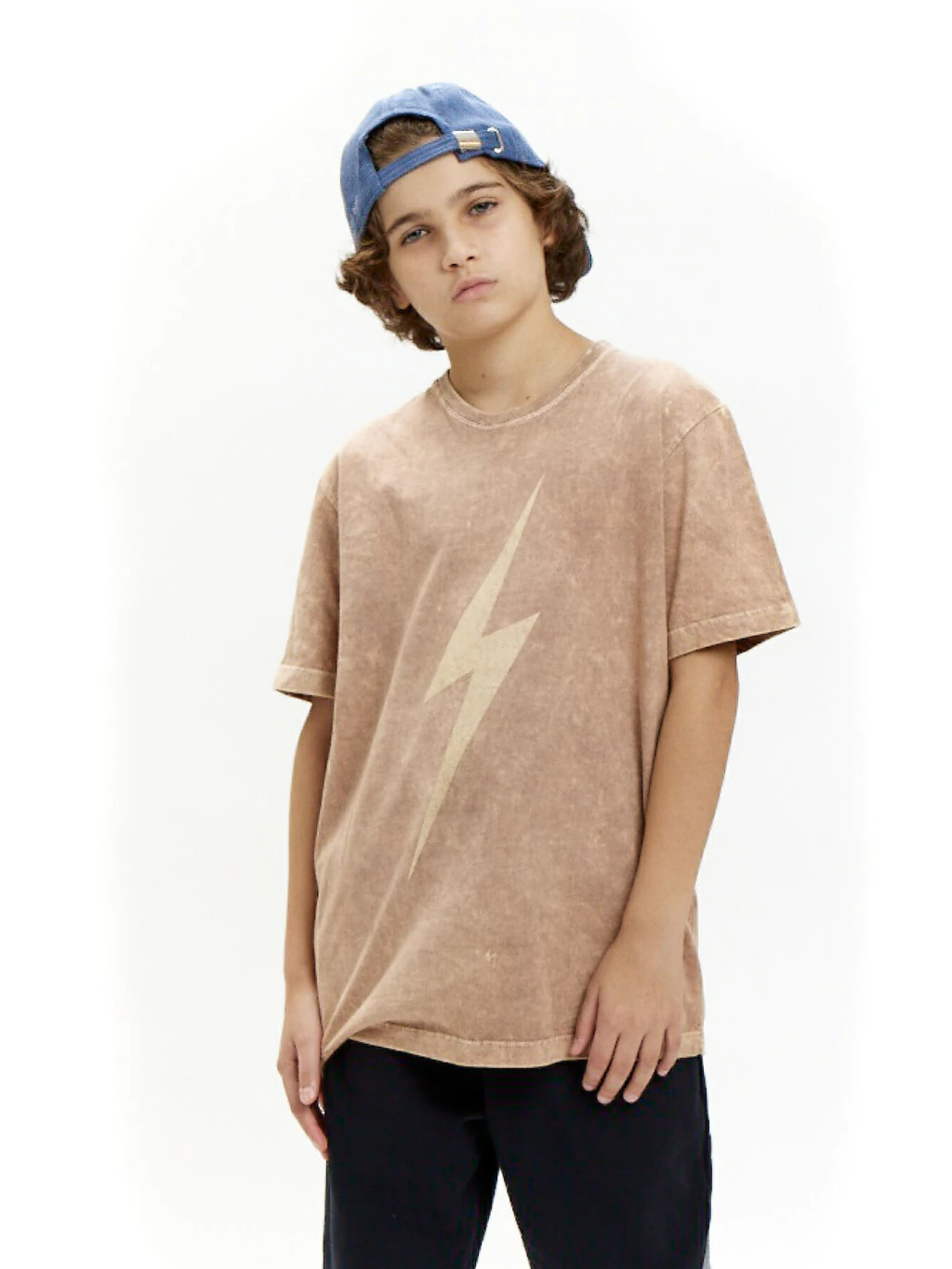 Jersey 24/1 100% algodón y teñido dirty. Estampada con logo de la marca.