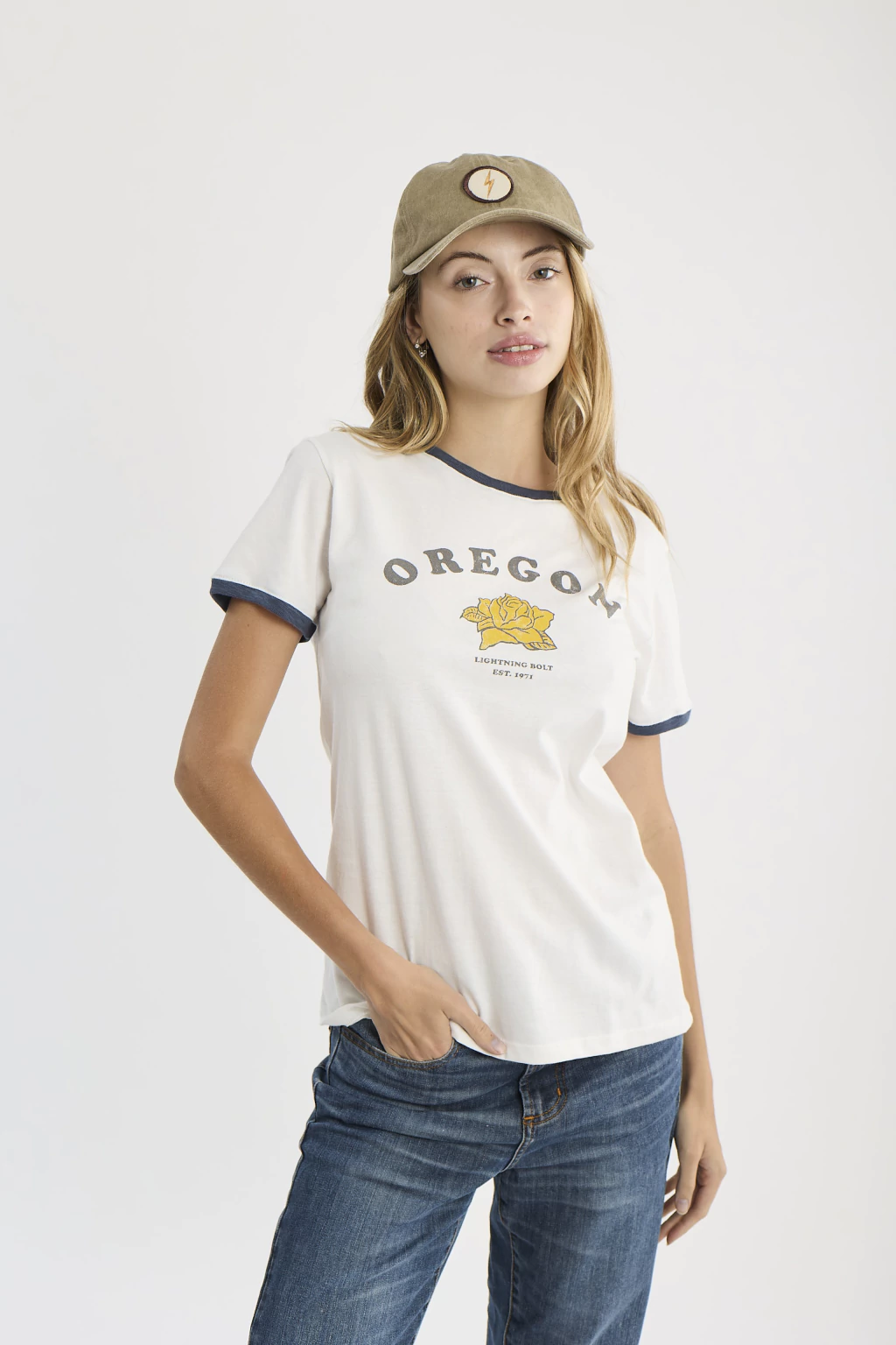 Jersey 30/1, 100% algodón. Calce TIGHT. Puños y manga a contratono y estampa en delantero.