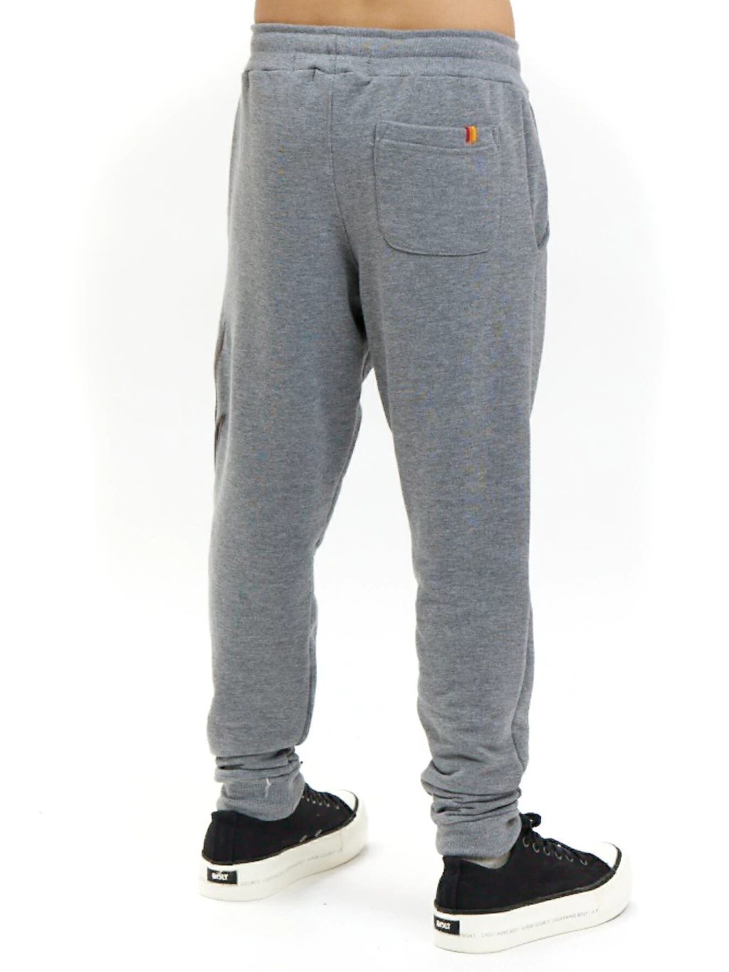 Jogging de Rústico 100% algodón y aplique con festón en la pierna. Bolsillos laterales y uno plaqué en la espalda.