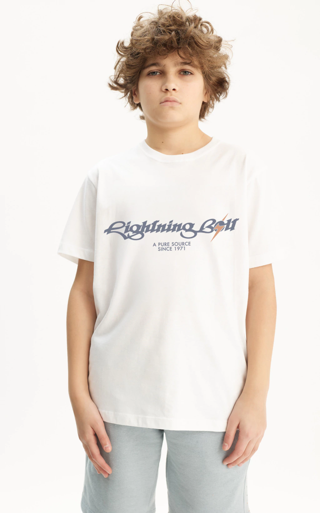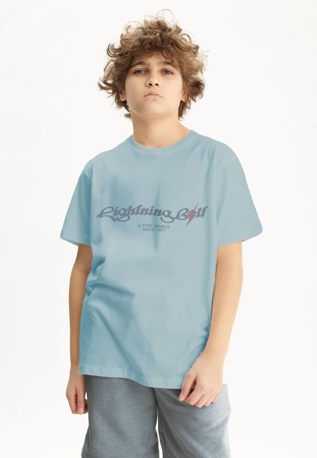 Jersey 24/1, 100% algodón con estampa en delantero del logo manuscrito.
